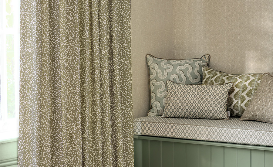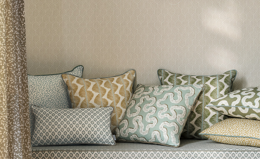 Als Hommage an britische Handwerkskunst werden die Designs in England auf einem Leinenmischgewebe aus biologischer und recycelter Baumwolle gedruckt. Die Stoffkolkektion wird mit einer passenden Tapetenkollektion ergänzt und bringt Wohnlichkeit und Ausdruck in jedes Zuhause.